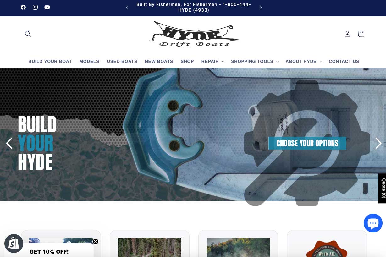 In the summer of 2023, I was commissioned to convert Hyde Drift Boat's WordPress/WooCommerce website over to Shopify. I've never worked with Shopify before and was a bit intimidated. I've played guitar for 30 years, and recently picked up a banjo and started playing chords in 10 minutes. The same goes with Shopify; the platform is new to me, but the principles are the same. Now I'm a huge fan, but not as big of a fan as I am of Hyde's amazing driftboats.